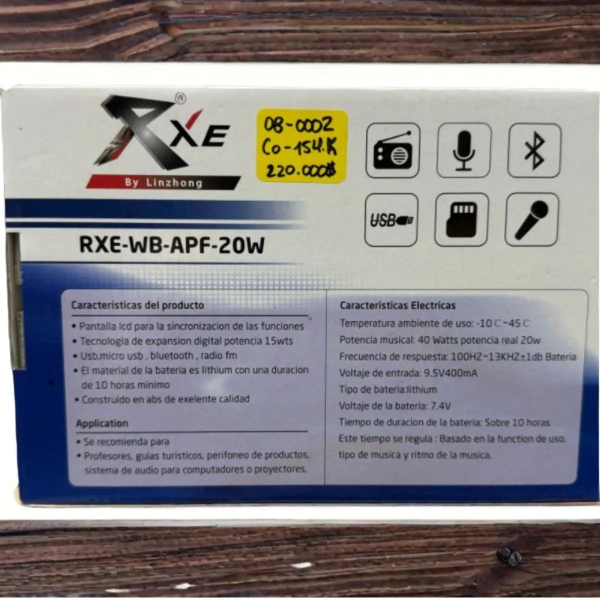 El amplificador de voz portátil RXE 20W ofrece una potencia de salida de 20W con un alcance aproximado de 20 a 30 metros, garantizando una proyección clara y eficiente. Integra conectividad Bluetooth, puerto USB y radio FM, permitiendo reproducir audio desde múltiples fuentes. Incluye micrófono alámbrico para una transmisión de voz estable, así como batería recargable de larga duración para un uso continuo. Su diseño compacto en material resistente ABS, junto con controles intuitivos y pantalla indicadora, lo convierten en un equipo práctico, duradero y fácil de usar en diferentes entornos.