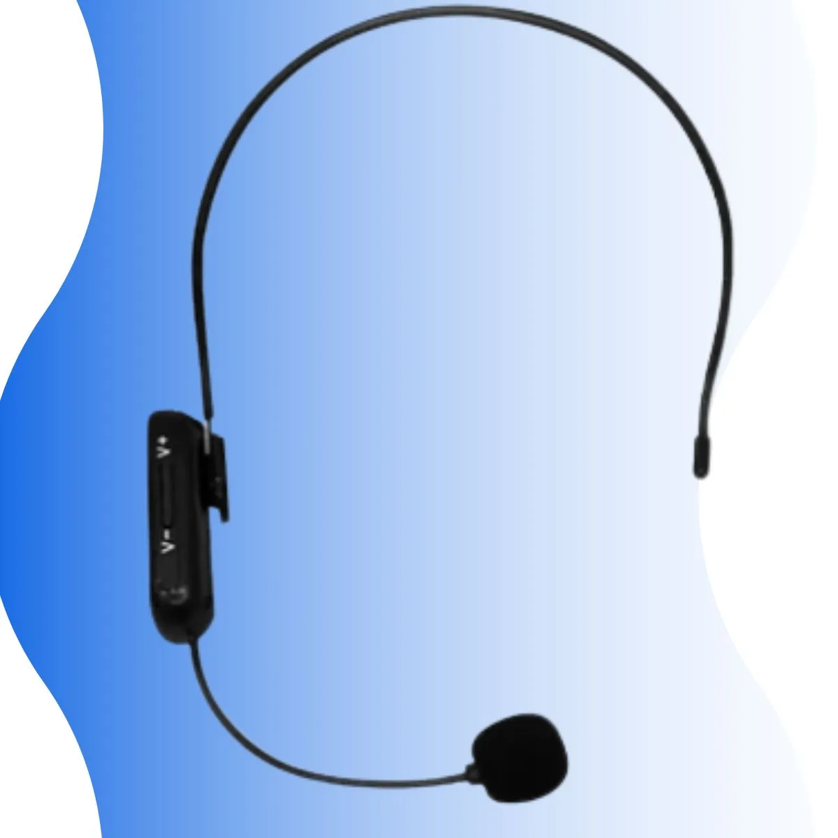 Utiliza un micrófono alámbrico tipo diadema, ideal para tener las manos libres mientras hablas.